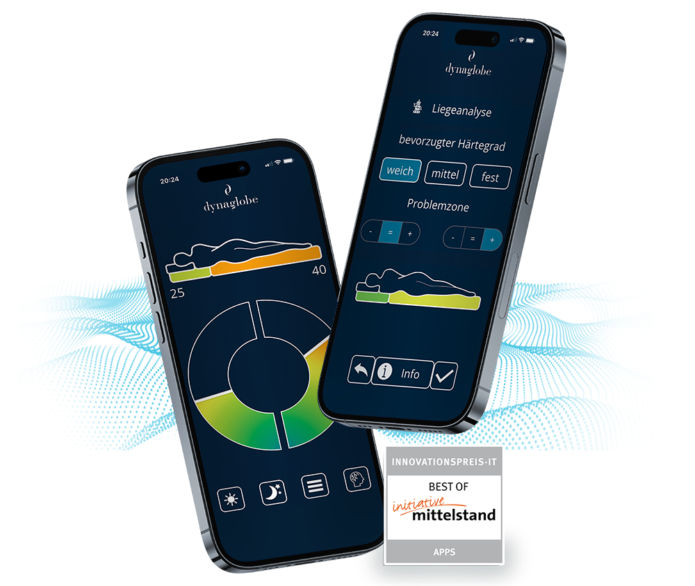 Spüren Sie den Unterschied: Die Luxus-Matratze Dynaglobe® eMOTION LUXE sorgt für eine optimale Druckentlastung etwa bei Nacken-, Schulter- oder Rückenschmerzen und bietet umfangreichen Komfort in jeder Liegeposition – wie ein Maßanzug für Ihren Bewegungsapparat. Absolutes Highlight der Produktausführung Dynaglobe® eMOTION LUXE ist die integrierte Steuerung samt Smartphone-App Ortho-Well® Smart – so verwandeln Sie Ihr Schlafzimmer in eine intelligente Wellness-Oase!