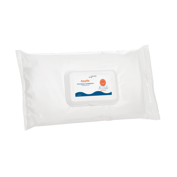 Eine Packung Easylife Vinylreinigungs- und Pflegetücher reicht bei dem empfohlenen 3-monatigen Reinigungsturnus eines Dualwasserbettes für ca. 1 Jahr. Die Tücher bieten eine komfortable Alternative zu flüssigen Vinylreinigern, da schwer erreichbare Stellen gut zu pflegen sind. Nach Einwirkung diese Stellen unbedingt mit einem weichen, saugfähigen Tuch trockenreiben. Eine Packung enthält 15 Einzeltücher in der Größe Din A4.